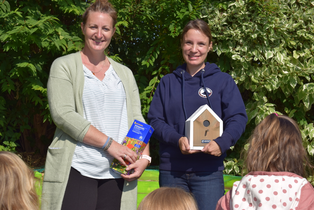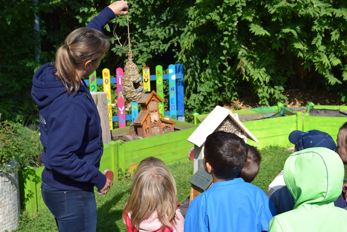Die Stiftung spendete diverse Vogelhäuser, ein Insektenhaus sowie ein Igelhaus und stellte sie gemeinsam mit den Kindern im Alter von drei bis sechs Jahren auf. Außerdem stellte die Stiftung ausreichend Futter (Vogel-, Eichhörnchen- und Igelfutter) zur Verfügung, das die Kinder zu verteilen lernten. Gleichzeitig wurde elementares Wissen über die Wildtiere vermittelt, die darin einziehen sollen. Der respektvolle Umgang mit der Natur stand dabei im Vordergrund. Menschen und Tiere sollen im Einklang miteinander leben können, das will auch das Modellprojekt zeigen und es an weitere Kitas und Schulen tragen. Leiterin Lavarino-Schelper ist überzeugt, dass der Vormittag Wirkung gezeigt habe. Durch die Verbindung von praktischen Erfahrungen und theoretischem Wissen sei ein optimaler Lernerfolg möglich, bestätigt die Erzieherin. Stifterin Eva-Maria Backhaus weiß: „Die Kinder können nun über die Jahreszeiten beobachten, was in der Tierwelt im Kita-Gartengelände passiert und müssen sich gleichzeitig um die Häuser und das Futter kümmern, ohne die Tiere zu stören. Das fördert den Respekt und das Verständnis der Natur und Tierwelt gegenüber.“
