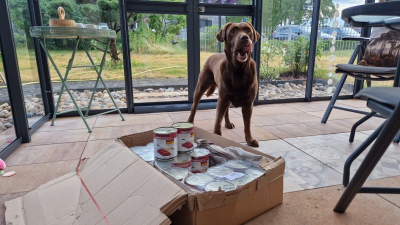 Frida verträgt nur eine Sorte von Futter. Nur durch zweckgebundene Spenden konnte die Backhaus Stiftung das Futter gleich online bestellen. 48 Dosen konnten direkt angeliefert werden bei der Familie. Die Freude und Erleichterung bei der Familie war groß. Das Futter reicht nun für ca. 1,5 Monate. Anbei die Bilder.