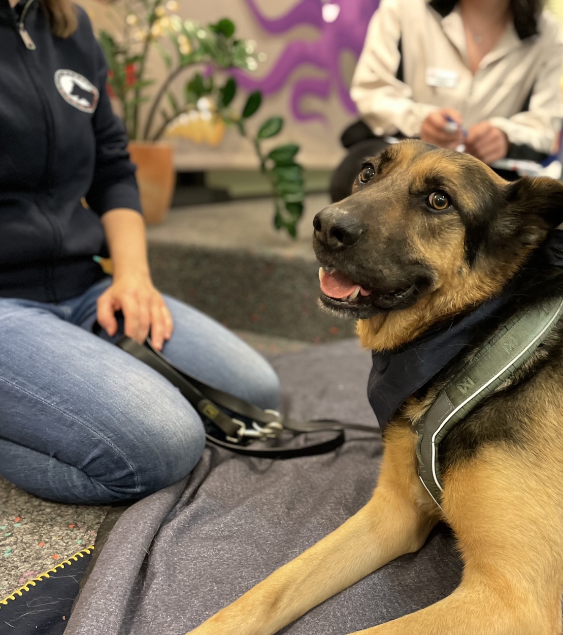 Die Auszubildende der Stadtbibliothek, Ewa, las in Anwesenheit von 📖 Rex aus dem Buch „Ein Hund namens Drei“, während die Kinder gespannt lauschten.