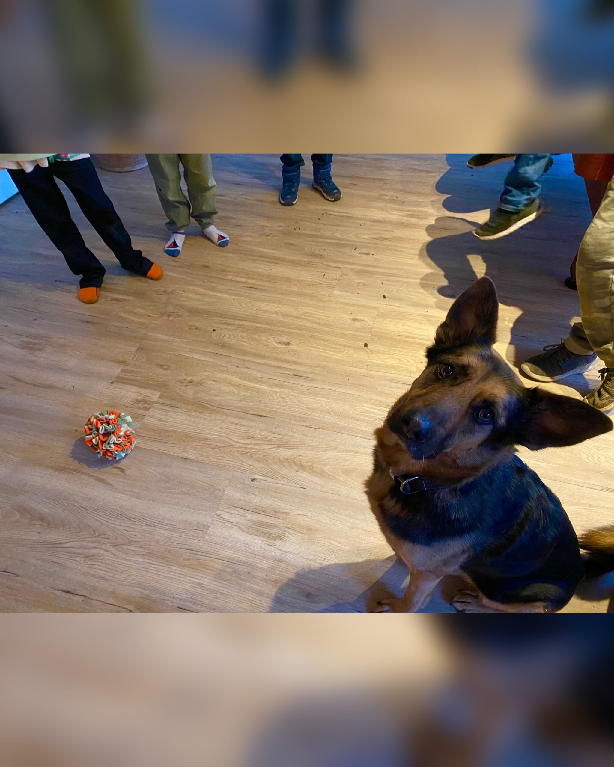 ❓🐕 gestellt wurden. Die Kinder erhielten dazu Bilder 🖼️von Hunden 🐕🦺🦮🐕🐩🐾mit deren Namen. Gemeinsam im Team suchten alle nach den richtigen 🎯 Lösungen. Zum Abschluss füllten die Kinder Rex‘ Schnüffelball 🐾mit ein paar 🍖 Leckereien, wodurch die Impulskontrolle mit Rex 🐕 geübt wurde. Anschließend probierten die Kinder mit Rex eine neue Übung aus: durch den Ring steigen. Die Kinder 🧒 haben die Übung hervorragend 💪mit Rex durchgeführt.