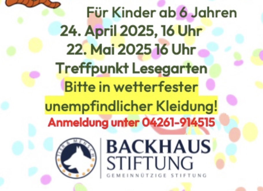 Im Frühling und Herbst gibt es jeweils zwei Termine, an denen die Rotenburger Outdoor Kids, die RoOKis, mit einem Entdeckerrucksack aufbrechen, um die Natur rund um die Stadtbibliothek zu erkunden.