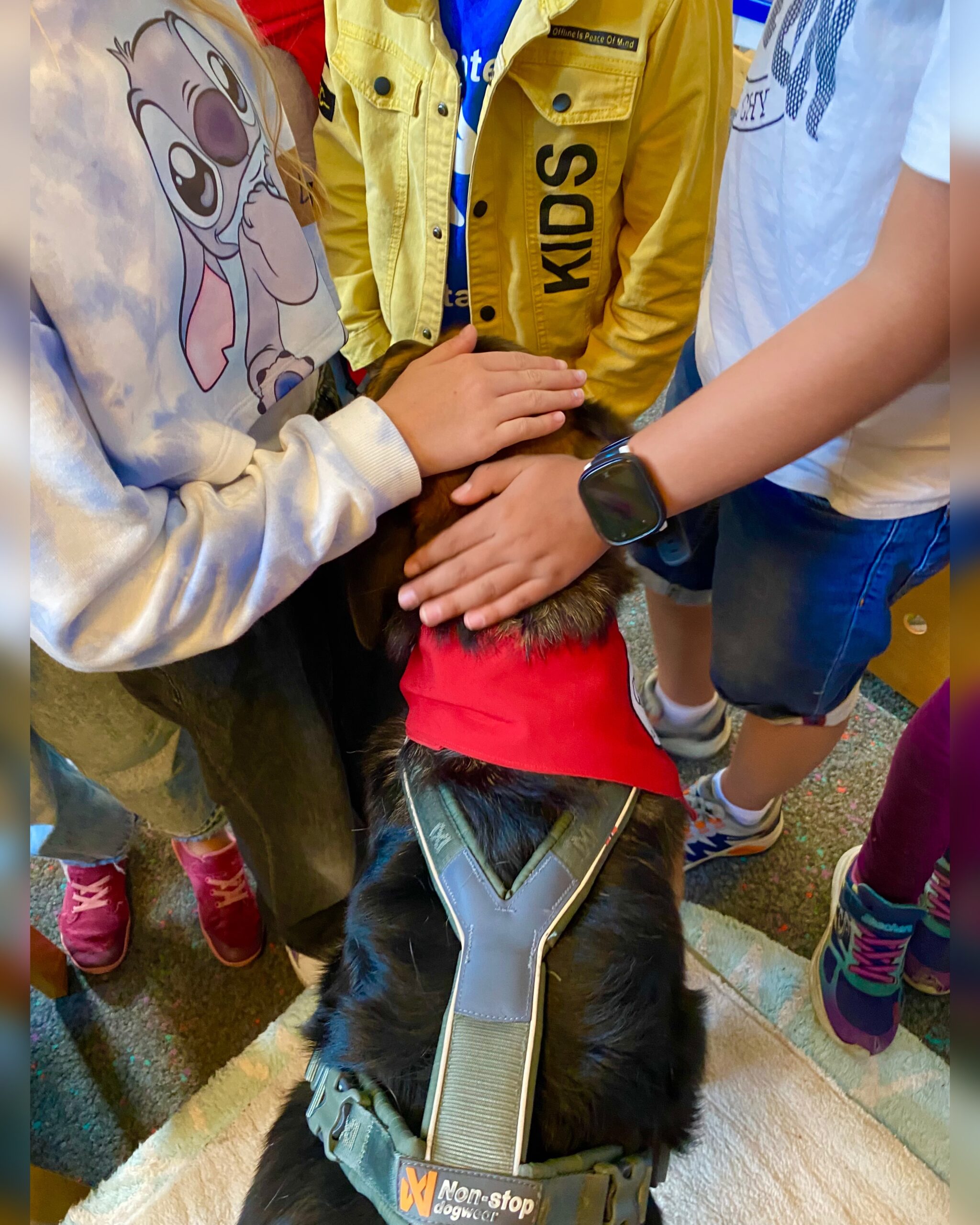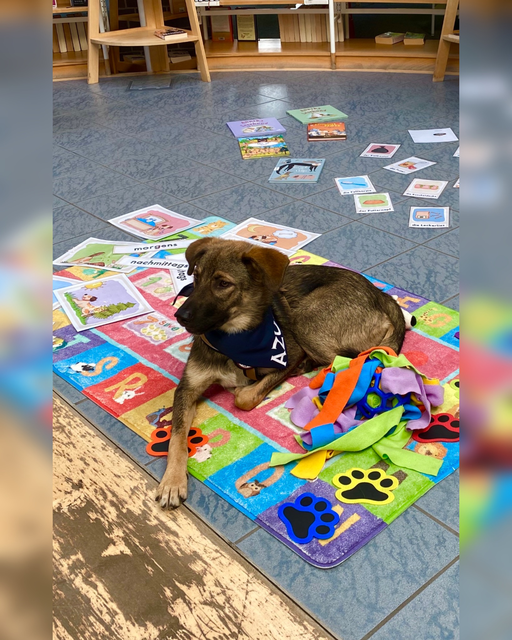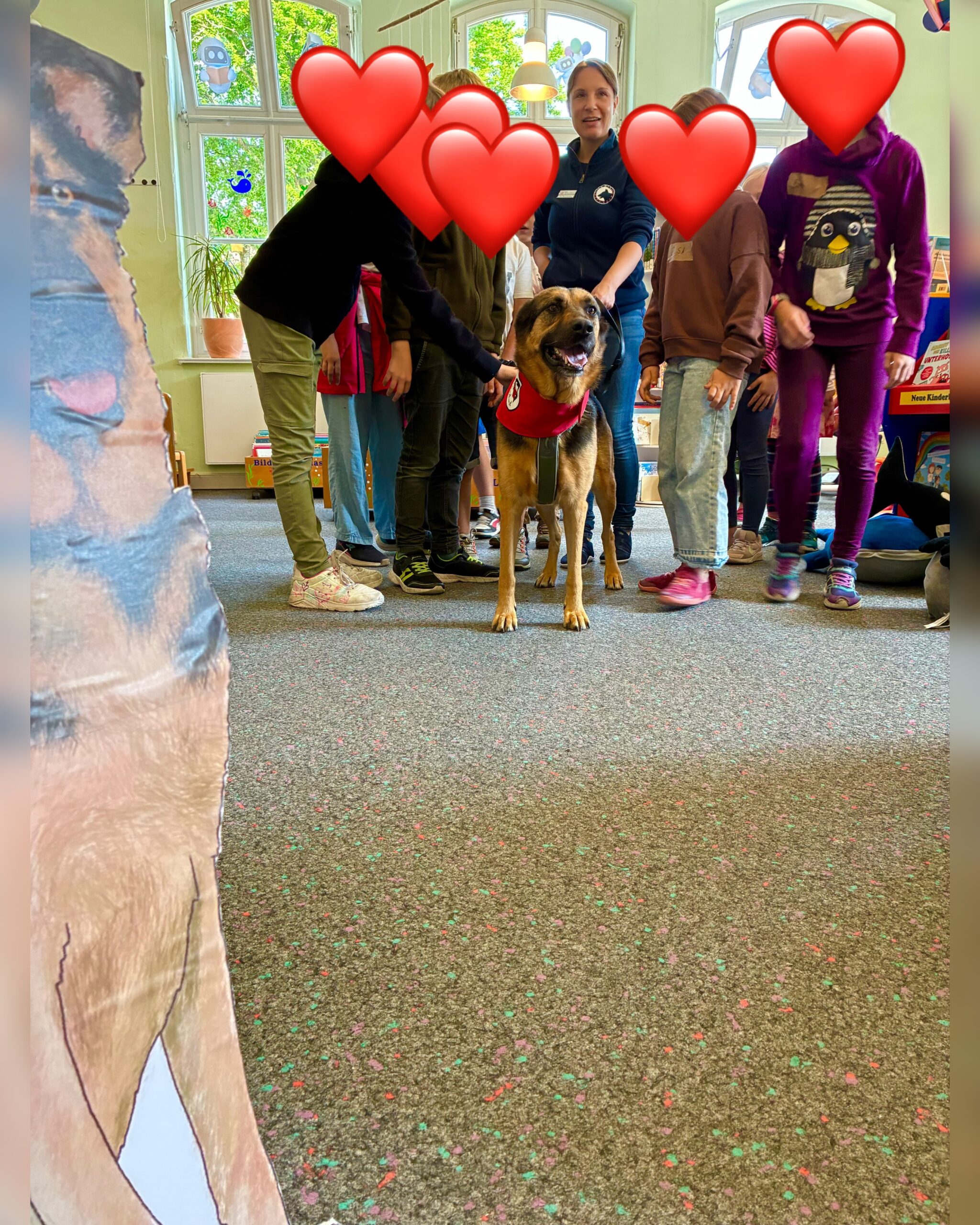Am 05.08. & 06.08. fanden vormittags die ROBI-Sommerleseclub-Clubtreffen 📚☀️ statt. Die Clubtreffen waren sehr gut besucht. Die Kinder lernten nicht nur etwas über Südafrika 🇿🇦 und die dort lebenden 🐃🦒🐘🦏 Tiere, sondern auch über das Buch, das Eva-Maria Backhaus vorgestellt hat. Darin geht es um das verwaiste 🦏❤️ Nashornbaby Thamba, das gerettet worden ist, und um das Projekt, in dem die Breitmaulnashörner im Nationalpark geschützt werden. Im Buch wird außerdem vorgestellt, wie die Anti-Wilderer-Einheit „The Black Mambas“ arbeitet und wie ihre Hunde zu Spürhunden ausgebildet werden – und generell um Tierschutz. An den zwei Tagen ging es auch um andere 🦮🐕🦺 Hundeberufe. Dazu wurde Lesehund Rex 🐾❤️eingeladen. Wie ein Profi ließ er sich streicheln oder ein Leckerli geben. Sein „kleiner Bruder“ Samy 🐾 (in Ausbildung) war am Mittwoch dran. Er lernte die Kinder in Ruhe kennen und ging mit ihnen gemeinsam zum großen 🛝Spielplatz, wo er alles in Ruhe 👀🐾 beobachten konnte. Danach beobachtete er die Kinder beim Lesen und beim Rätsel lösen.