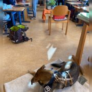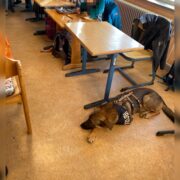 Am darauf folgenden Tag ging es gleich frisch und munter in die Schule, wo Samy auch seine Decke mitbrachte. Dank der tollen Vorbereitung durch ihren Klassenlehrer wussten die Kinder schon Bescheid รผber die Hunderegeln, sodass Samy sich sofort wohl fรผhlte und sich entspannt niederlieรŸ. Wรคhrenddessen waren die Kinder kreativ am Werk und malten Tiermasken, die die Eva-Maria mitgebracht hatte. Doch die Zeit fรผr den Abschied rรผckte nรคher, und wir hatten eine ganz besondere รœberraschung fรผr die Klasse: Sie durften die neuen Patenklasse fรผr die zweite Klasse werden fรผr das Projekt! Projektstart ist Januar 2026. Eine wunderbare Gelegenheit, den neuen Schรผlern ein Gefรผhl von Sicherheit und Orientierung zu bieten. Die Kinder sowie auch der Klassenlehrer und seine fachliche Assistentin erhielten eine kleine, feine Aufmerksamkeit.