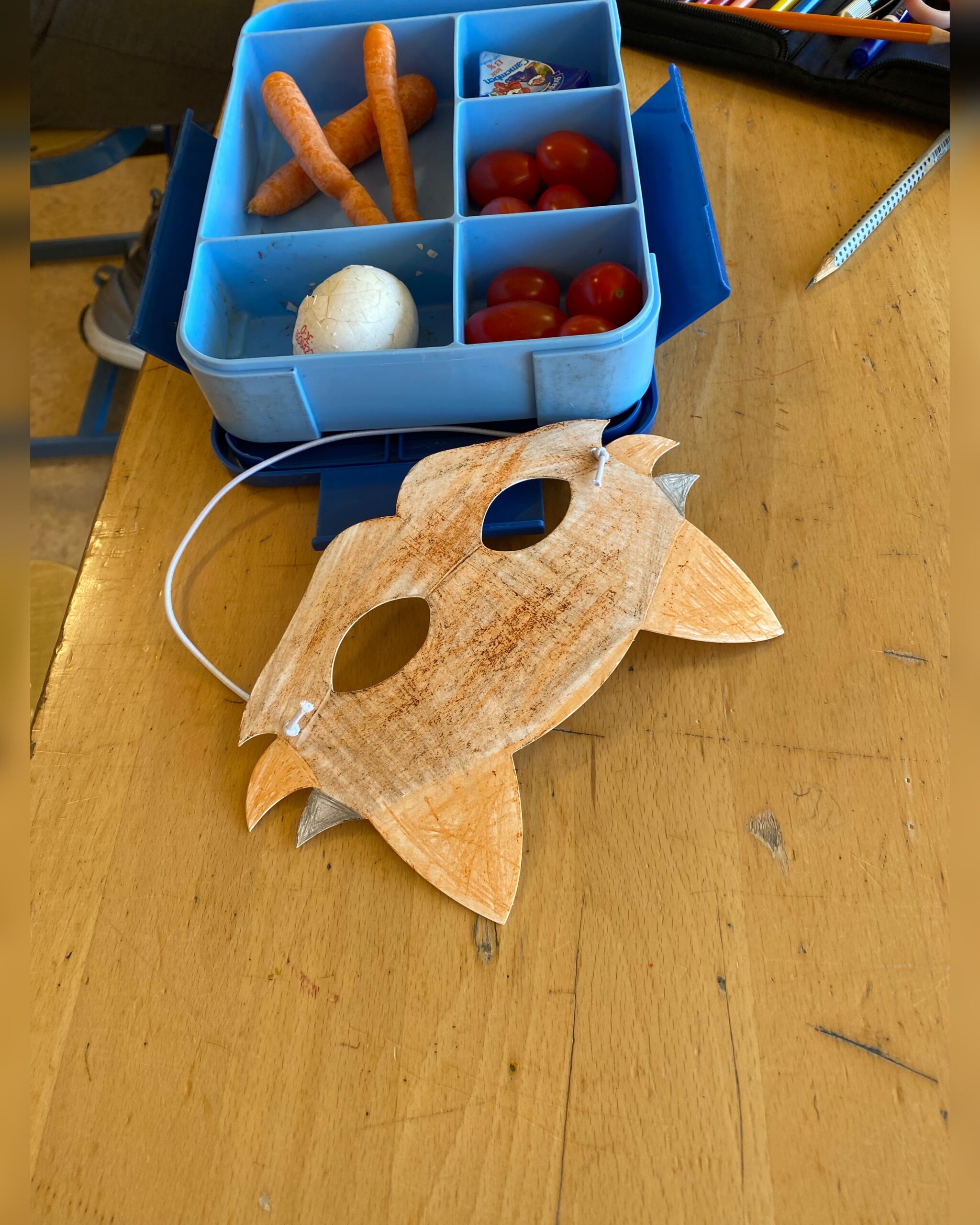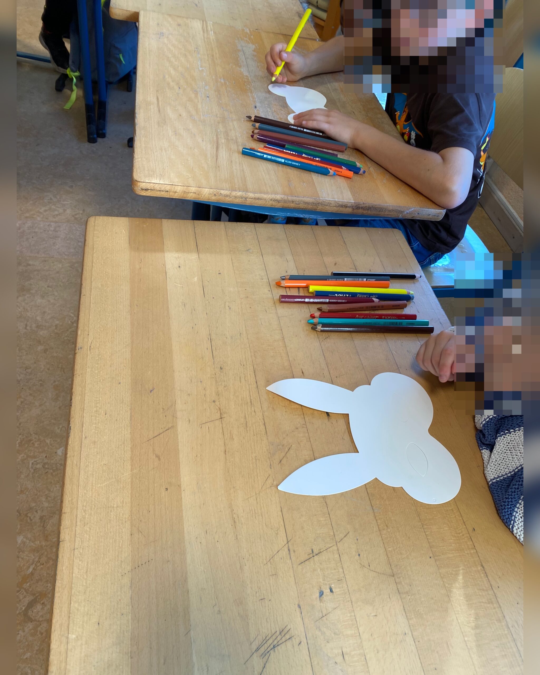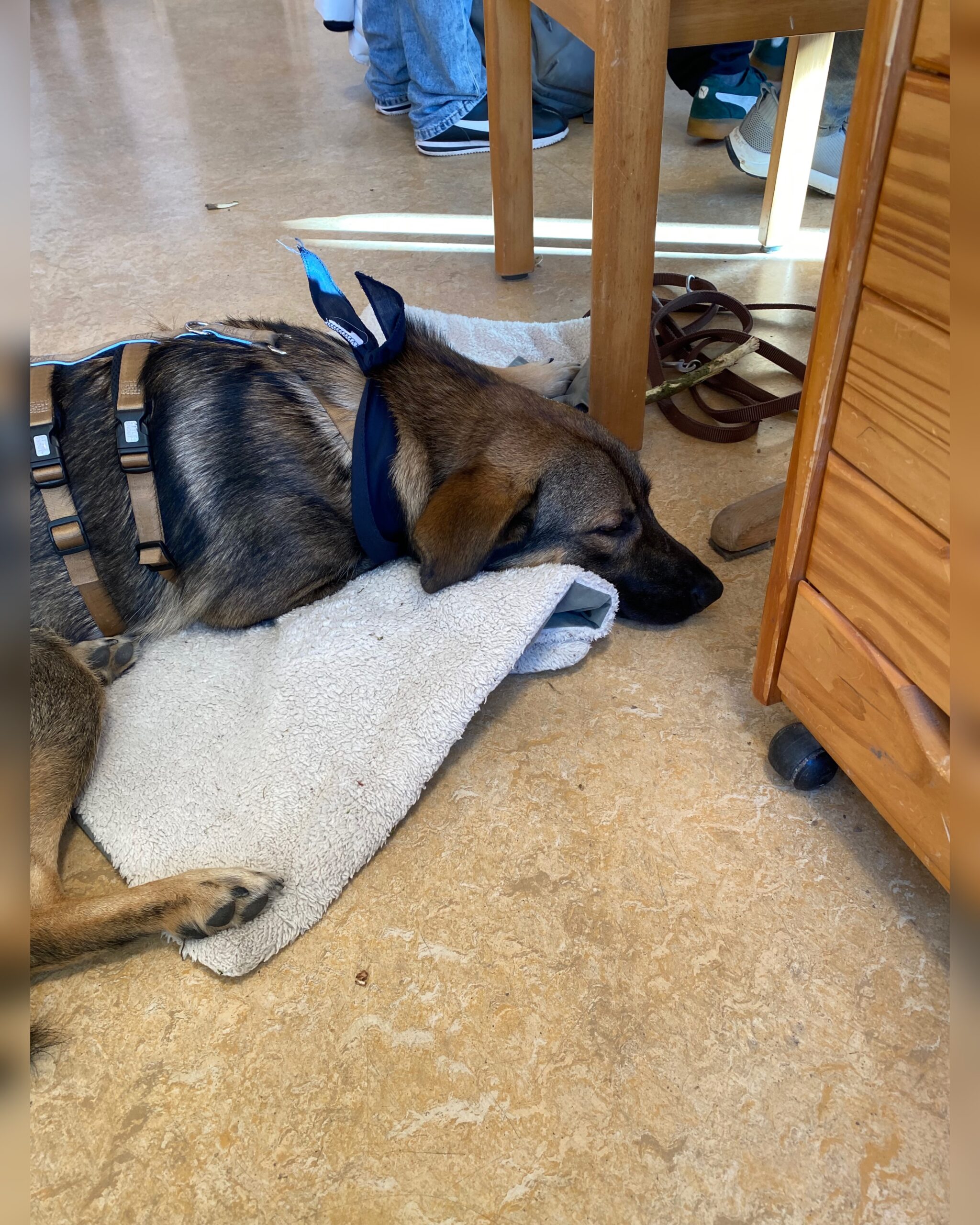 Am darauf folgenden Tag ging es gleich frisch und munter in die Schule, wo Samy auch seine Decke mitbrachte. Dank der tollen Vorbereitung durch ihren Klassenlehrer wussten die Kinder schon Bescheid über die Hunderegeln, sodass Samy sich sofort wohl fühlte und sich entspannt niederließ. Währenddessen waren die Kinder kreativ am Werk und malten Tiermasken, die die Eva-Maria mitgebracht hatte. Doch die Zeit für den Abschied rückte näher, und wir hatten eine ganz besondere Überraschung für die Klasse: Sie durften die neuen Patenklasse für die zweite Klasse werden für das Projekt! Projektstart ist Januar 2026. Eine wunderbare Gelegenheit, den neuen Schülern ein Gefühl von Sicherheit und Orientierung zu bieten. Die Kinder sowie auch der Klassenlehrer und seine fachliche Assistentin erhielten eine kleine, feine Aufmerksamkeit.