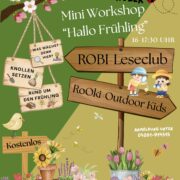 Im März dürfen sich unsere Grundschüler auf ein wundervolles Abenteuer zusätzlich 🌷🌼🥾 freuen! Am 17. März laden wir zu unserem Mini-Workshop „Hallo Frühling“ ein. Zusammen mit dem ROBI-Leseclub 📚 und den ROOKi-Outdoor Kids 🥾 werden wir die spannenden Geheimnisse des Frühlings 🌷🪱🐝 🪹enthüllen. Wir werden 🔍 erforschen, welche Pflanzen 🌱 hier blühen und welche Blumen in ihrer Pracht 🌼erstrahlen. Außerdem setzen wir mit unseren kleinen Entdeckern 📖🌱 Knollen rund um die Stadtbibliothek 🌼🌷🌱 und basteln 🌷🪴✂️📐ein schönes Erinnerungsstück für zu Hause.