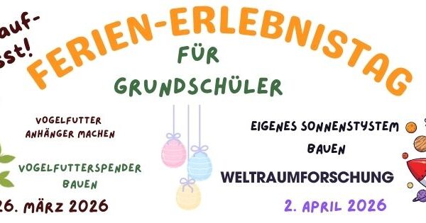 Und am 2. April verwandeln wir die Bibliothek in eine spannende 🚀🛰️🛸🔭 Weltraumstation. Dort basteln wir unser eigenes Sonnensystem 🔭🪐🌏 und führen ein Astronautentraining 🏋️♂️💪 durch. Beide Ferien-Erlebnistage sind kostenlos für Grundschüler.🎈